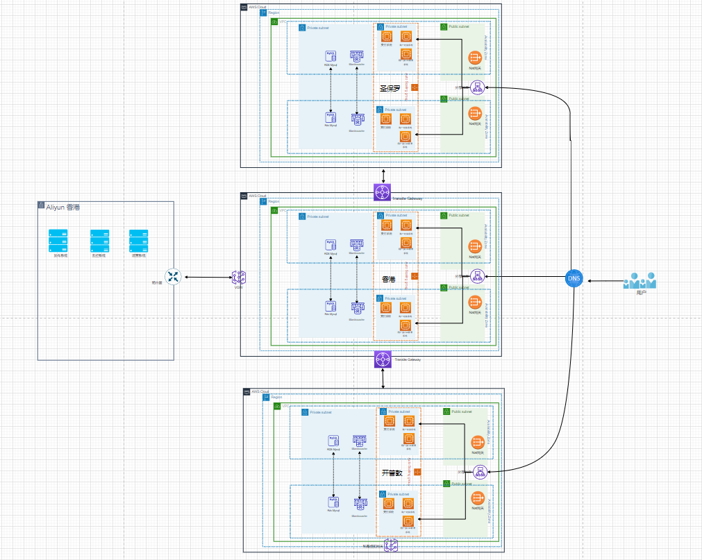 该支付客户是一家为全球用户提供跨境交易的支付公司。目前他们有一个支付平台部署在阿里云的香港 印尼 印度 美国,欧洲等地区,经过在AWS测试后,以及未来符合欧洲GDPR等其他合规要求,决定现在将香港区域部分业务迁移到AWS香港,开普敦,圣保罗