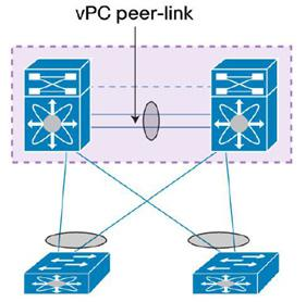 而下图中的 vPC 描绘了在传统拓扑中,这些设计使第 2 层-第 3 层边界位于汇 聚层,以实现更大的第 2 层可达性,