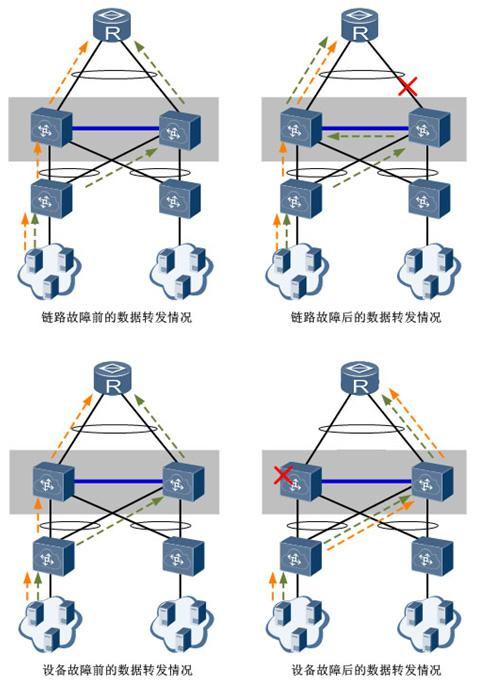 不但 解决了堆叠设备单点失效的问题,还极大提高了全网的可靠性。