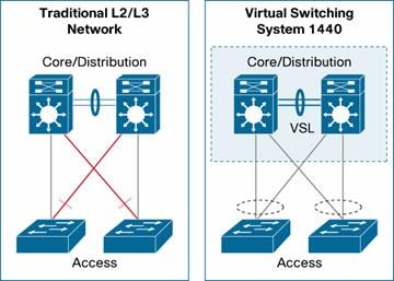 而想要启用 VSS 技术,还需要通过一条特殊的链路来绑定两个设备成为一个 虚拟的交换系统,