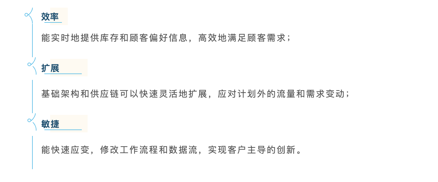 全球调研机构 Forrester 的白皮书指出,这些在新零售领域取得突破的组织,其 IT 平台都拥有以下三项关键能力: