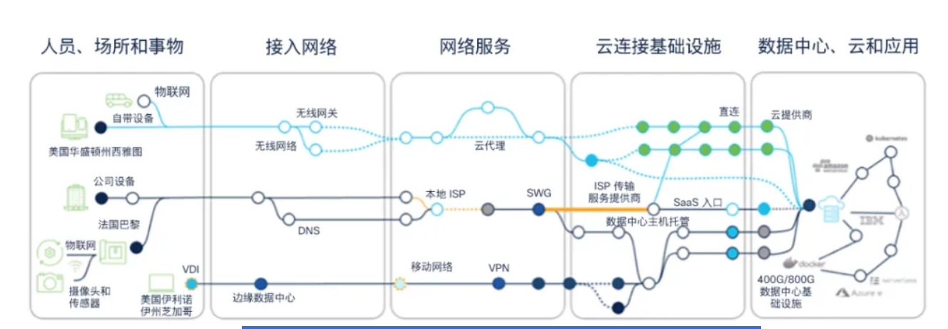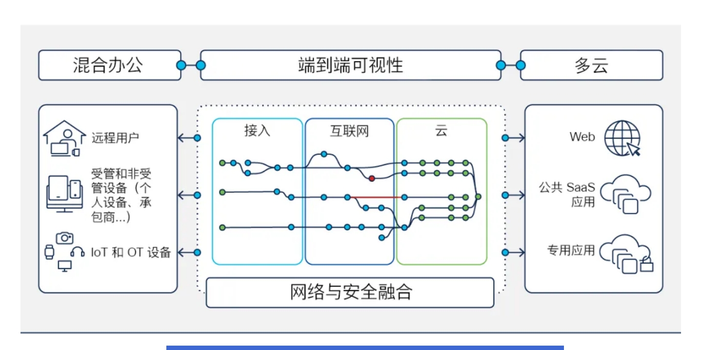 首先,云已成为新的数据中心,工作负载从本地迁移到混合云和多云架构。其次,互联网已成为新的网络,并支撑着穿越不同网域的企业连接。最后,由于远程员工和混合办公员工为数众多,现在基本上任何地方都要可以办公。