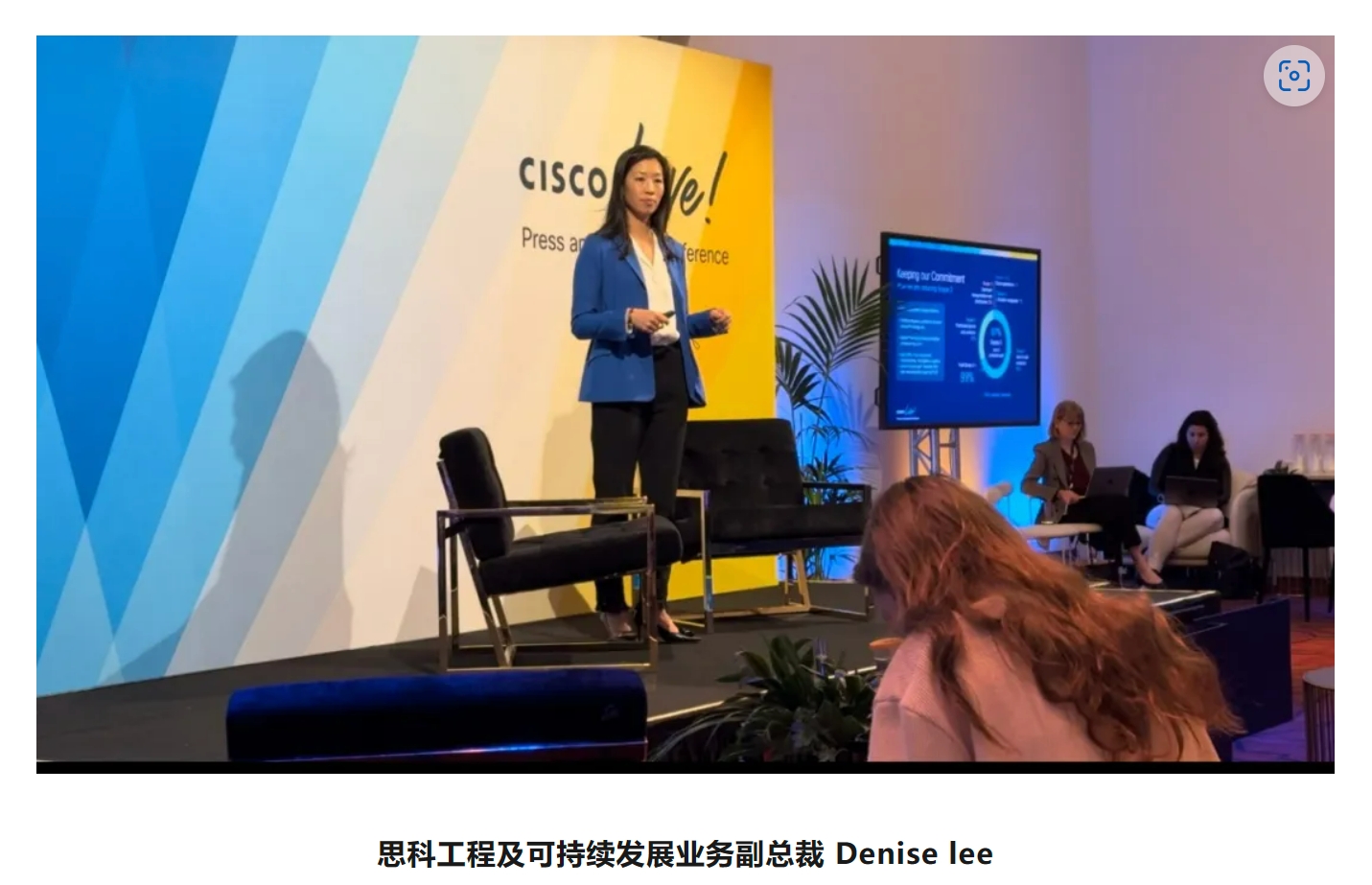 思科工程及可持续发展业务副总裁 Denise lee 在可持续发展的圆桌演讲中强调,思科在环境报告、供应链永续发展实施以及各项产品上已累积了丰富的经验,思科所强调的节能减排旨在提高行业数字化效率,减少碳排放。