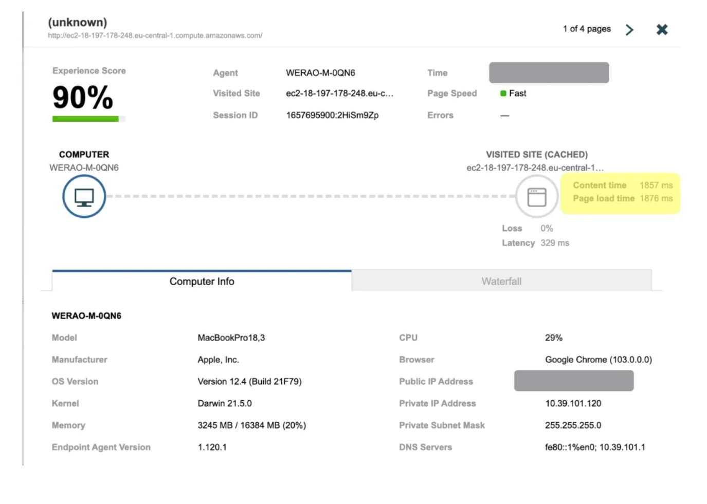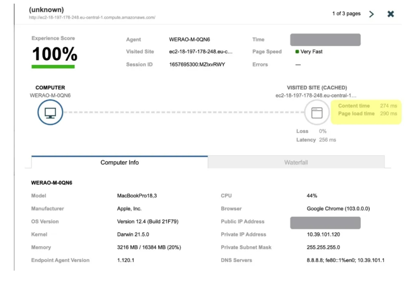 笔者在AWS 法兰克福区域部署了测试的Web Server,使用ThousandEyes对网页加载进行加速前后的效果对比: