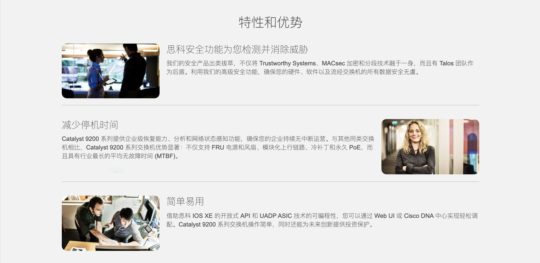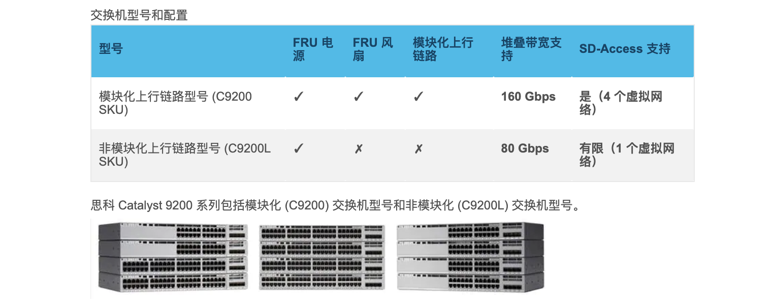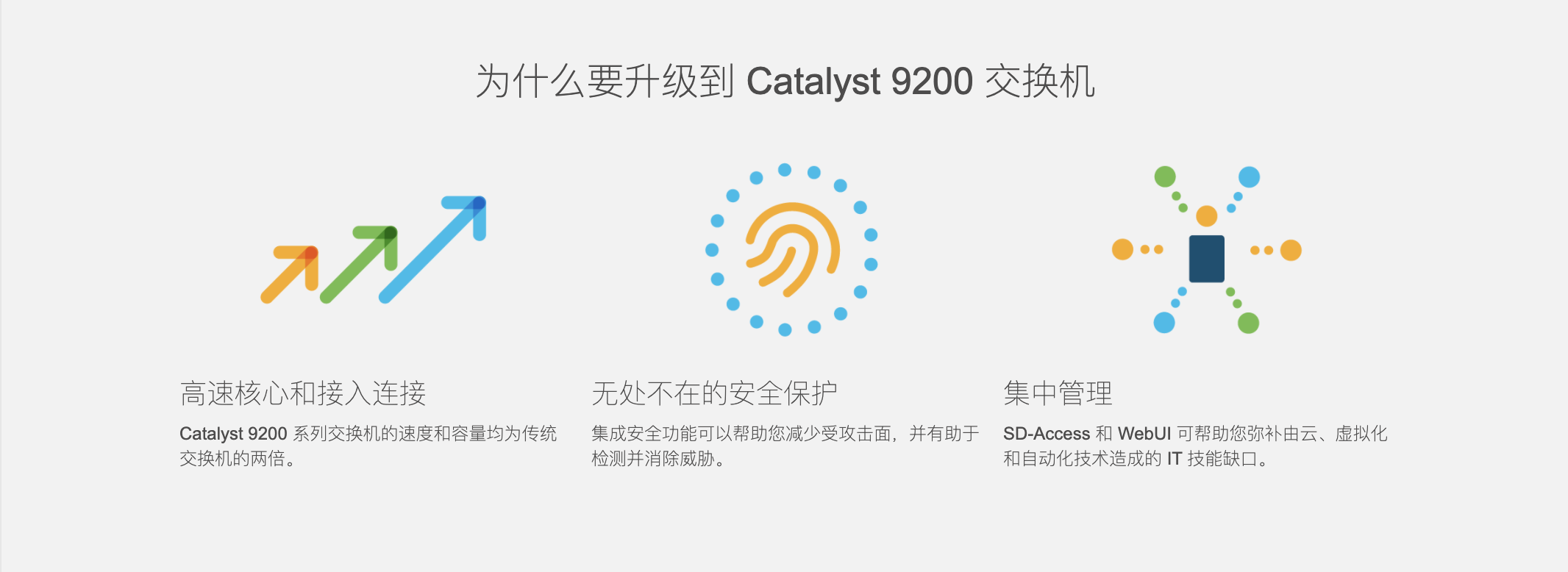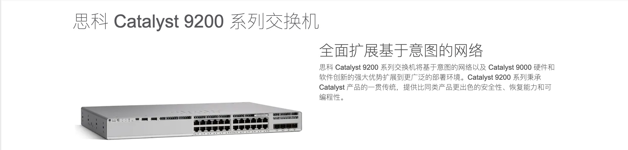 思科® Catalyst® 9200 系列交换机将基于意图的网络以及 Catalyst 9000 硬件和软件创新的强大优势扩展到更广泛的部署环境。Catalyst 9200 系列交换机秉承 Catalyst 产品的一贯传统,不仅安全可靠,而且能够无间断工作并简化 IT,可提供不打折扣的易用性体验。