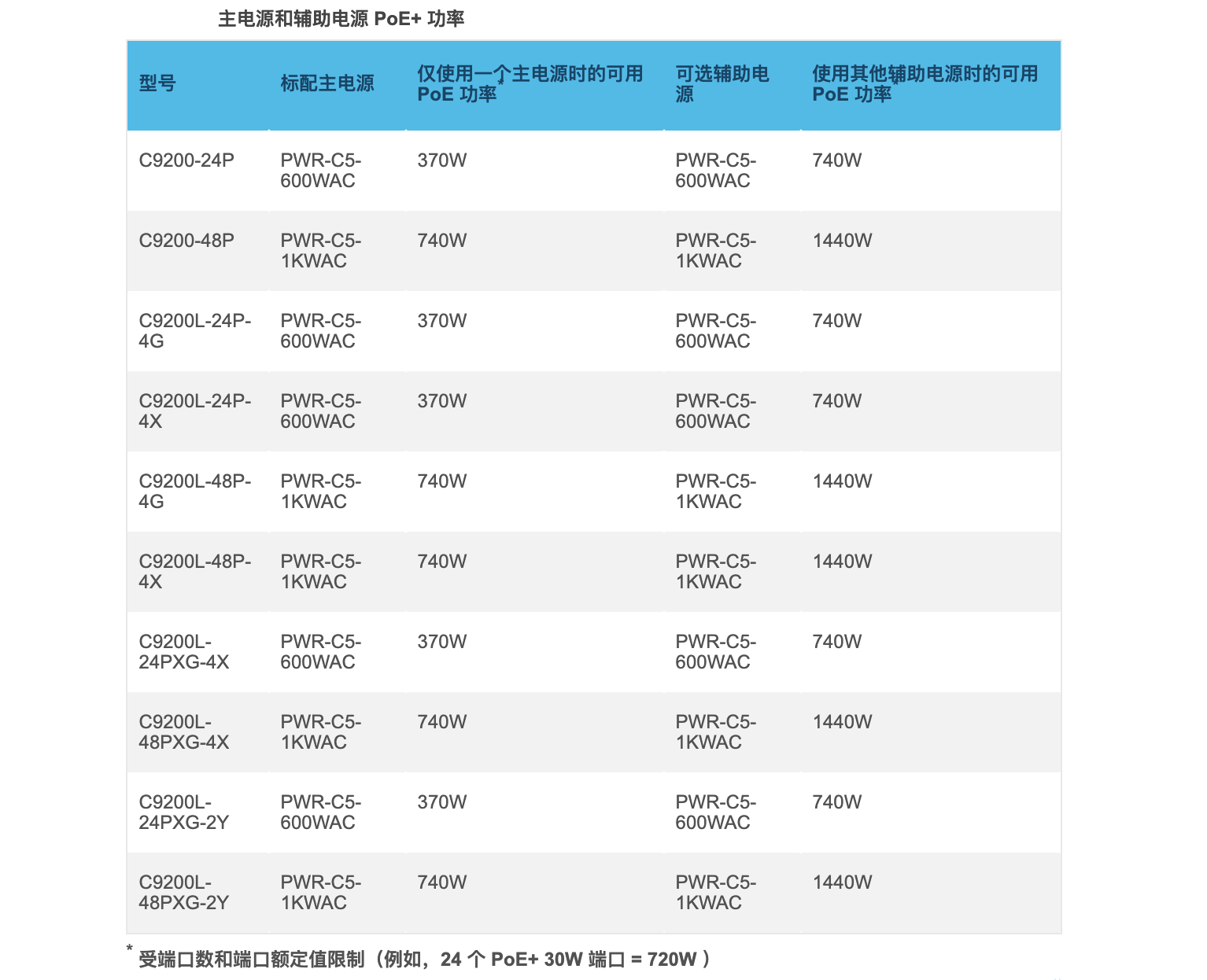 ● IEEE 802.3at PoE+:思科 Catalyst 9200 系列交换机支持 IEEE 802.3at PoE+(每个端口功率最高 30W),以降低包含思科 IP 电话、思科 Aironet® 无线接入点或其他符合标准的 PoE+ 终端设备的总拥有成本。通过 PoE+,您无需为每个支持 PoE 的设备提供插墙式电源,也无需额外购置电缆和设计电路,而在传统 IP 电话和 WLAN 部署中,这些需求是无法避免的。思科 Catalyst 9200 系列交换机的 PoE+ 功率分配是动态进行的,功率映射最高可扩展至 1440W PoE+ 功率。