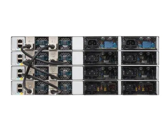 思科 Catalyst 9200 系列交换机支持双现场可更换电源(图 3)。每台交换机发货时配一个标配电源,第二个相同的电源可在初始订单中购买,也可以稍后添加。第二个电源可以提供冗余,或根据需要为 PoE+ 端口提供额外功率。