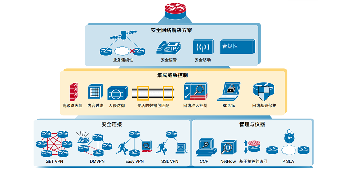 将网络安全平台、网络平台以及应用平台有机结合,开放相应的接囗,实现全网统一的安全体系架构,提高整个解决方案的可扩展性,可控性与可管理性。